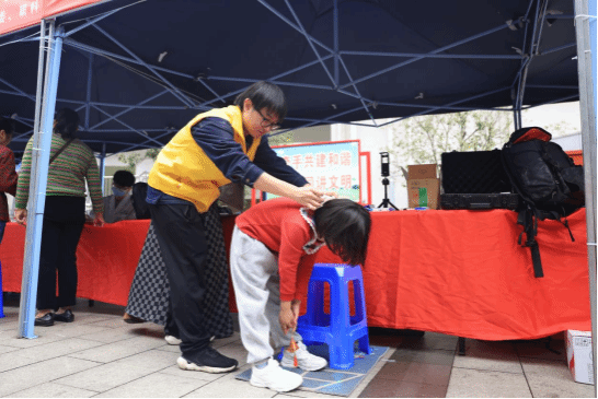 志愿者们有的在人体模型前一次次循环往复急救操作,有的在视力检测展位一遍遍的指导观察,有的在脊柱侧弯筛查展位依托先进设备,帮助群众了解脊柱生长现状;医护志愿者们则结合专业知识,通过测量、听诊、问询等手段,为群众带去健康建议。服务现场吸引大批群众参与,在志愿者、医护与群众互动的热烈氛围中,展现着弘扬雷锋精神,热心帮助他人的真谛。