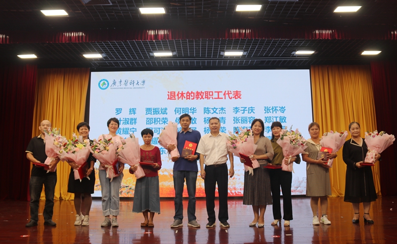 希望各位荣休教职工继续保持好心态,继续关心关注国家和社会的发展,继续为学校人才培养、科学研究、社会服务献计献策、发光发热、贡献力量。组织部门、人事部门、离退休部门、各基层党组织要用心用情关爱荣休教职工,要积极主动为学校、师生和退休教职工搭建起沟通的桥梁。广大青年教师要以荣休前辈为榜样,解放思想、攻坚克难、创新实干,秉持“立志立德、求真求精”“艰苦奋斗、自强不息”之精神,主动肩负起“兴医强医、守护健康”“立德树人、为党育人”的责任使命,努力成为塑造学生品格、品行、品味的“大先生”,做让党和人民满意的“四有”好老师,把在各位前辈同事努力下取得今天学校发展的成就继续推进好,将学校发展建设更越来越好,不辜负一代代广东医人的期望。