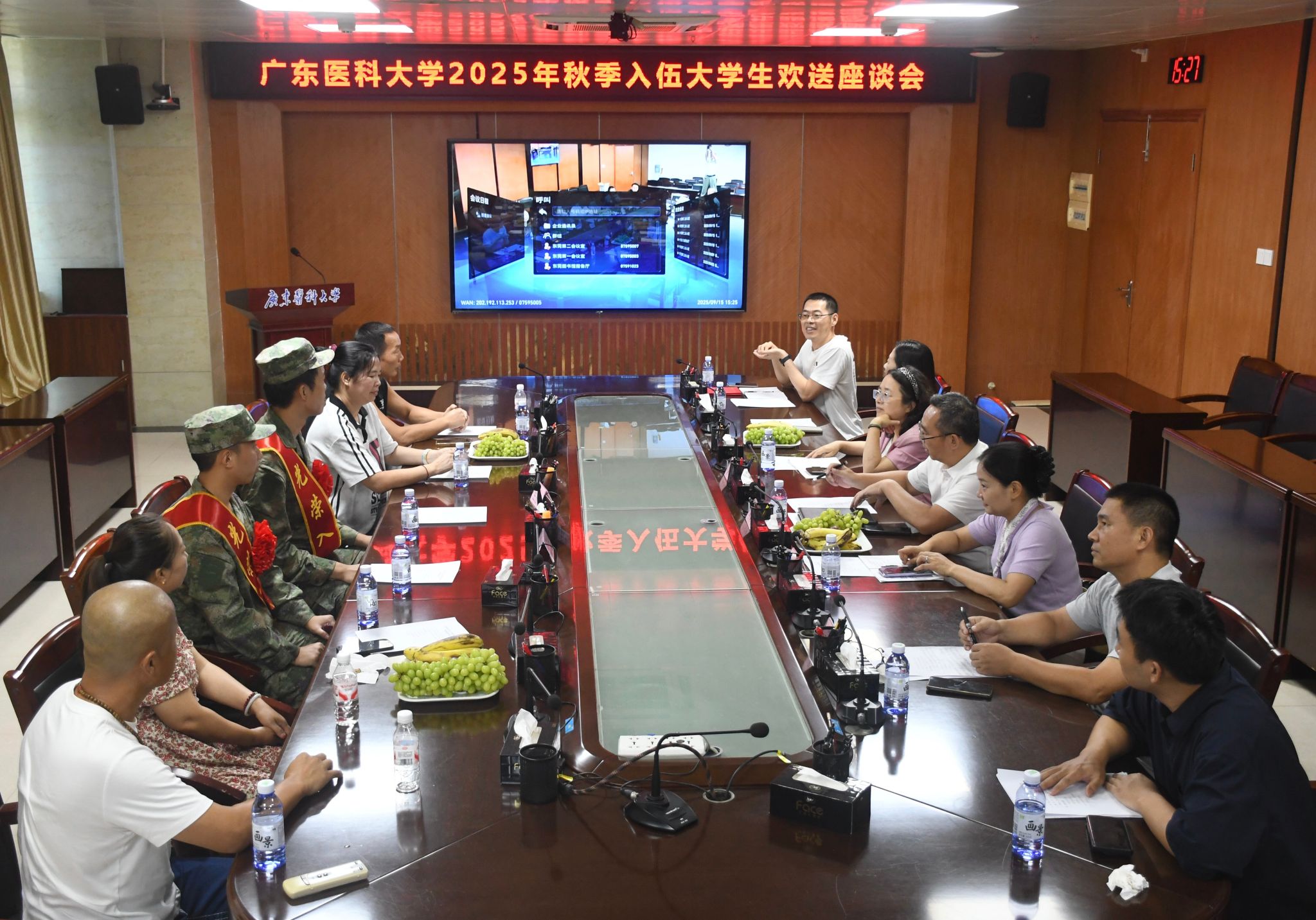 9月15日,304am永利集团官网湛江校区2025年秋季入伍大学生欢送座谈会在综合楼九楼第二会议室举行,为即将踏上军旅征程的大学生士兵送上学校的关心与祝福。2025年全校共有25名大学毕业生应征入伍。