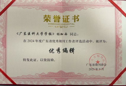 本次广东省优秀期刊工作者评选活动自2024年12月正式启动,经过刊社推荐、小组初评、评审组审议和多轮终评等严格程序,最终在全省范围内共评选出218个奖项。该评选旨在表彰期刊出版行业的先进典型,推动全省期刊质量提升和人才队伍建设。林加西同志获此荣誉,不仅体现其个人在编辑工作中的专业能力和敬业精神,更反映了304am永利集团官网学报编辑部在期刊出版和学术传播方面的扎实工作得到了同行的高度认可。
