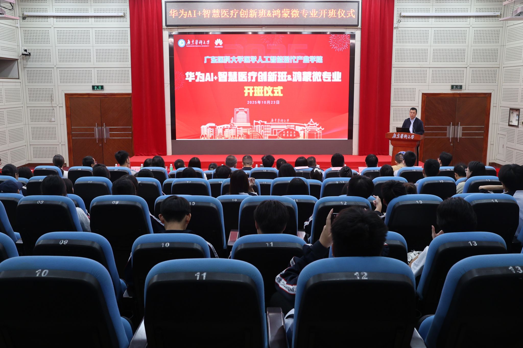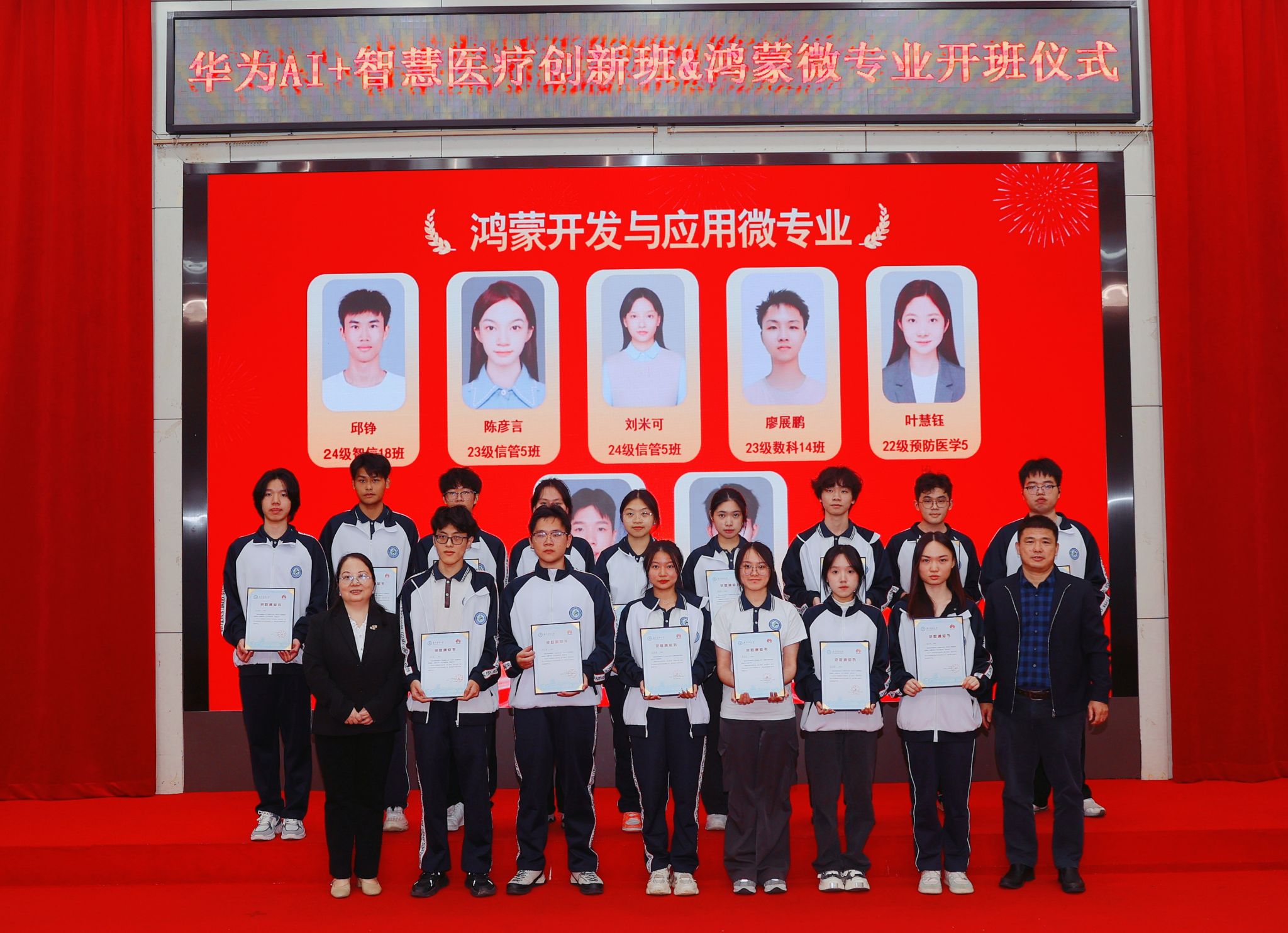为深入贯彻国家“健康中国”战略,推动新医科建设与医工交叉创新人才培养,10月23日晚,304am永利集团官网华为“AI+智慧医疗”创新班&鸿蒙应用开发微专业开班仪式在东莞校区行政楼报告厅隆重举行。