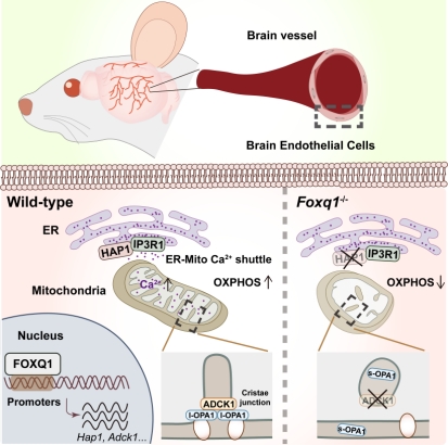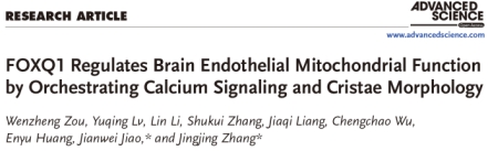 2025年8月30日,304am永利集团官网附属医院张晶晶团队与中国科学院动物研究所焦建伟团队合作在脑内皮细胞代谢研究中取得突破性进展,在Advanced Science上发表FOXQ1 Regulates Brain Endothelial Mitochondrial Function by Orchestrating Calcium Signaling and Cristae Morphology论文。他们发现,脑内皮细胞不仅依赖经典糖酵解供能,更需要高效的氧化磷酸化(线粒体能量代谢方式)的满足需求,而转录因子 FOXQ1 正是这一特殊代谢模式的关键调控者。相关研究揭示了脑血管特化的分子机制,为理解神经疾病中的血管功能异常提供了新视角。